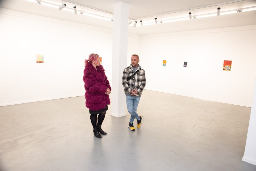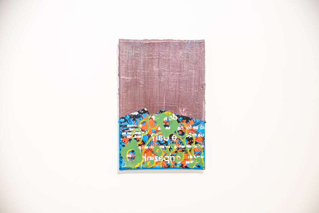 The process of creating the painting takes place through the superposition of numerous layers, and the first layers are applied silkscreen prints, or images created with the use of stencil masks. These graphics or words that are printed on the canvas, are collected from the urban landscape, are ornamental details of historic buildings, lines of nature, graffiti phrases or coming from political speeches that circulate in the media. Thus, the first layers of the painting are created as a deposit of data that are collected from the urban landscape and the political landscape and, finally, end up being covered by a last pictorial layer that covers them, like a last skin that veils, that guards or destroys what is underneath.