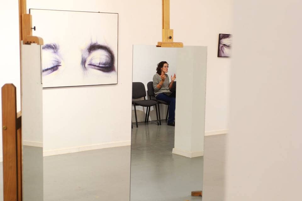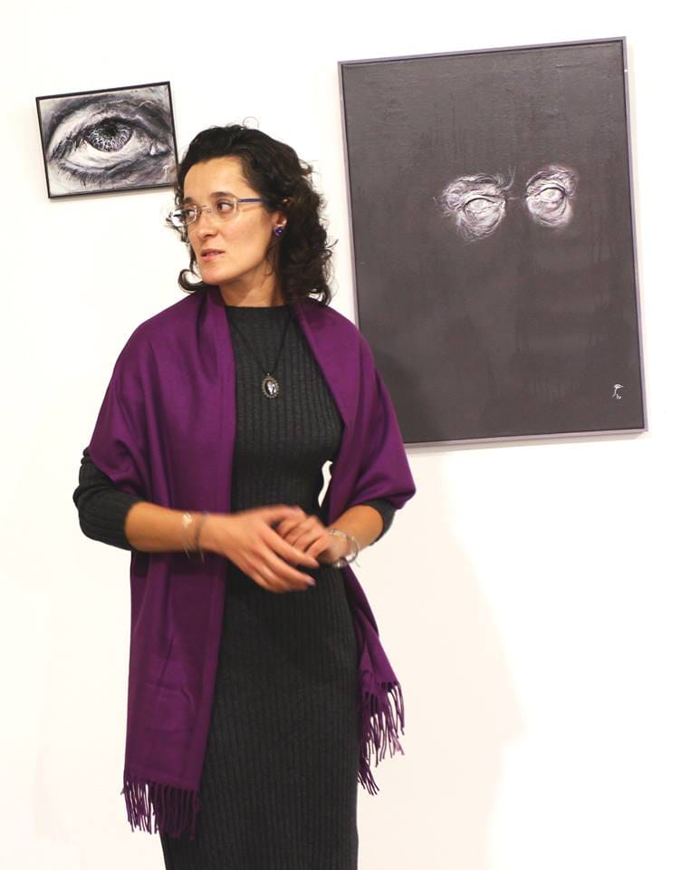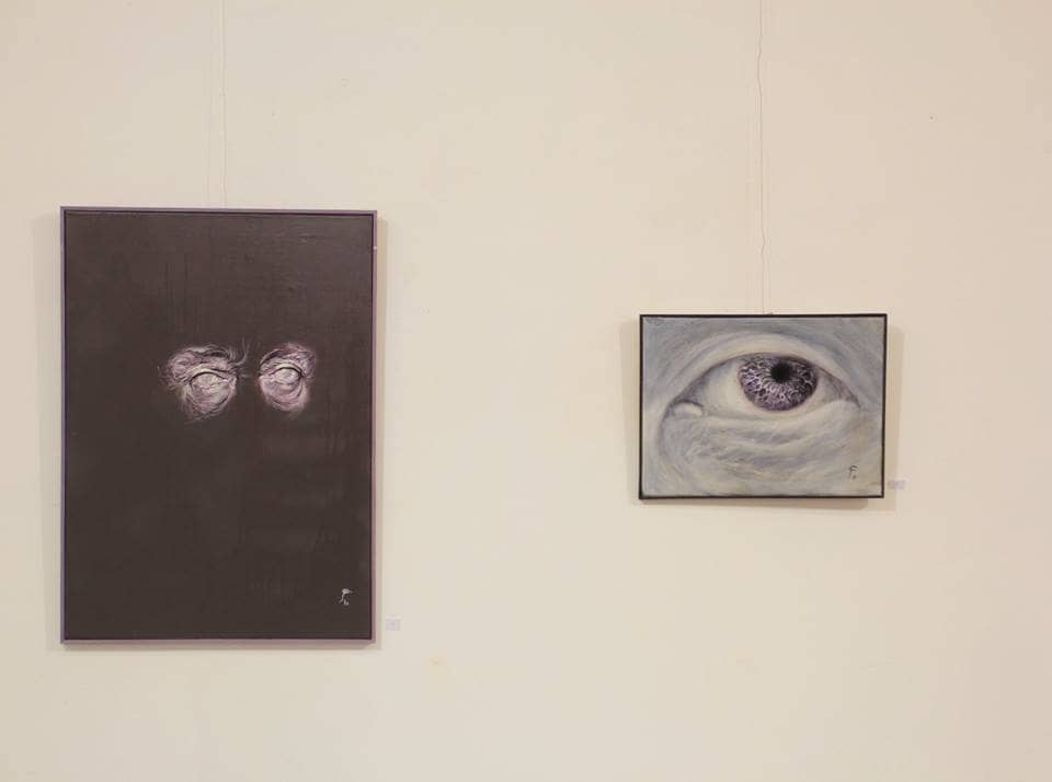 The ,,Inner Shadows” exhibition brings to light the complexities of transition between one’s inner universe, crossing through the natural state of solitude, symbolized by the closed eyes, to the beginning of self-actualization in the outer universe, represented by the half-opened eyes. The journey is completed and ready for repetitions only after an exploration of ones relationship with the present external environment, that of which is represented by the wide open eyes. The artists series of self-portraits paralleled by the intense eye details create a tensioned atmosphere shown through an ethereal palette of violet colors. The paintings attempt to draw the viewer into a state of meditation, solitude and psychological analysis of the inner self. This internalization process plays a real therapeutic role, in order to regain an inner balance and peace.