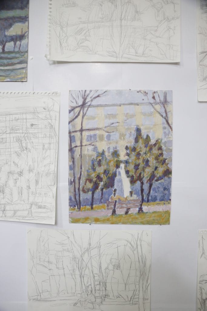 They are personal notes for future paintings and the record of past experiences. Most were made in three locations: Copou Park, the Botanical Gardens and the small park close to Piața Unirii. I preferred the botanics on grey days; the masses of trees by the lake more mysterious, appearing in blocks of grey – greenish or reddish.
